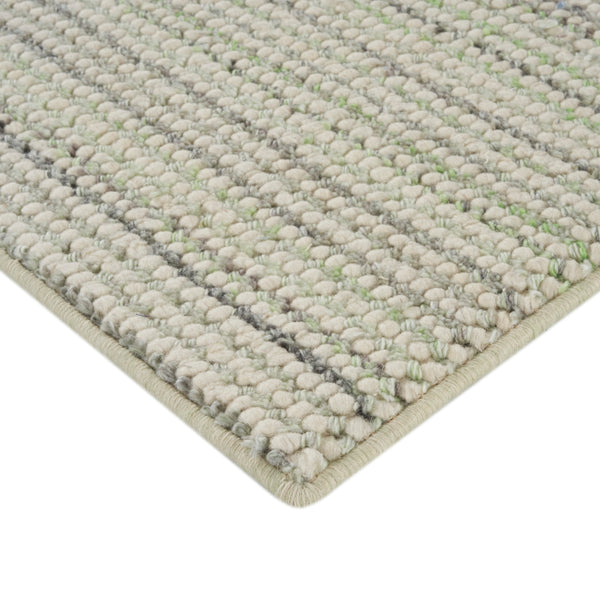 The Gem Swatch is an area rug designed to add texture and subtle color to any living space. Its design features a predominantly light grey base, crafted with a distinctive bobble-knit texture, offering both visual interest and a soft feel underfoot. Throughout the light grey field, irregular linear patterns emerge from flecks of various colors, including hints of orange, yellow, and darker grey, creating a dynamic and natural aesthetic. Constructed from a durable blend of 60% wool and 40% polyester,...