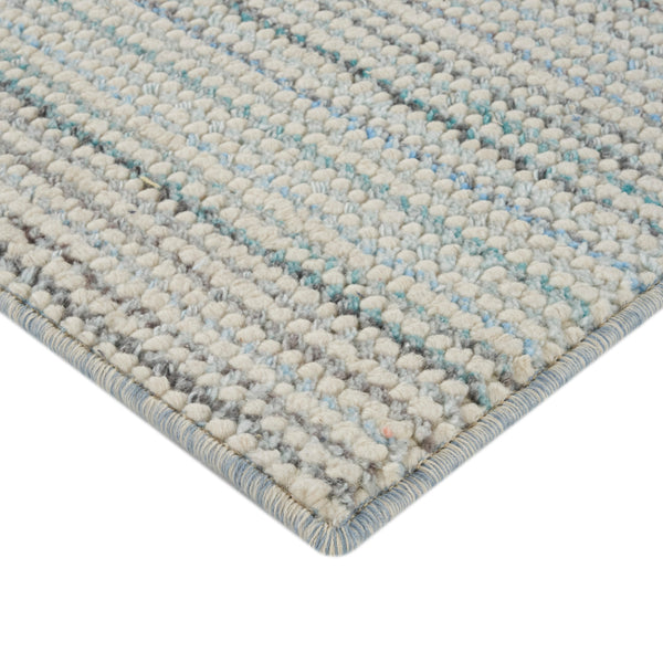 The Gem Swatch is an area rug designed to add texture and subtle color to any living space. Its design features a predominantly light grey base, crafted with a distinctive bobble-knit texture, offering both visual interest and a soft feel underfoot. Throughout the light grey field, irregular linear patterns emerge from flecks of various colors, including hints of orange, yellow, and darker grey, creating a dynamic and natural aesthetic. Constructed from a durable blend of 60% wool and 40% polyester,...