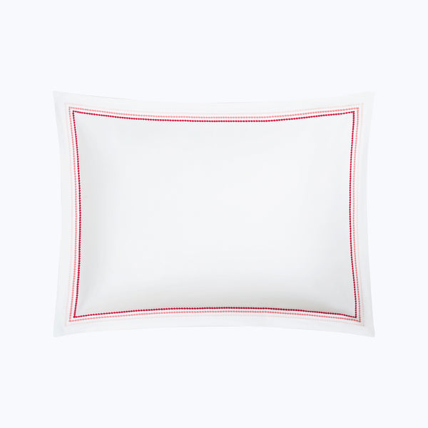 Bring quiet luxury to the bedroom with the Amara Triple Pearl Sateen Sham by Matouk. Crafted in lustrous cotton sateen with a 300 t.c., this refined sham features a trio of delicate embroidered strands in a tonal palette. An elevating addition to understated spaces. Choose from Hazy Pool, Palm Green, and Paradise. Available in Euro, King, and Standard.