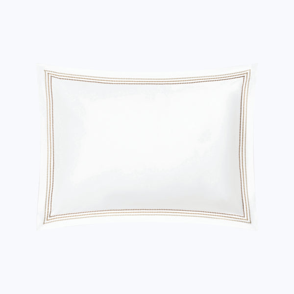 Bring quiet luxury to the bedroom with the Amara Triple Pearl Sateen Sham by Matouk. Crafted in lustrous cotton sateen with a 300 t.c., this refined sham features a trio of delicate embroidered strands in a tonal palette. An elevating addition to understated spaces. Choose from Hazy Pool, Palm Green, and Paradise. Available in Euro, King, and Standard.