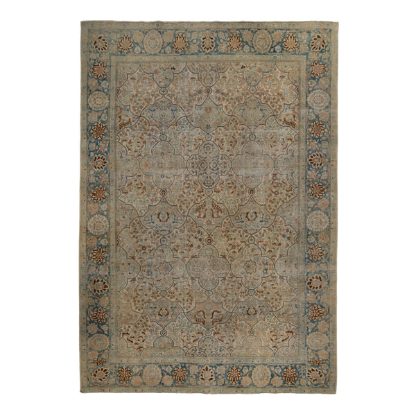 Cream & Blue Antique Persian Tabriz Rug - 8' x 11'6"