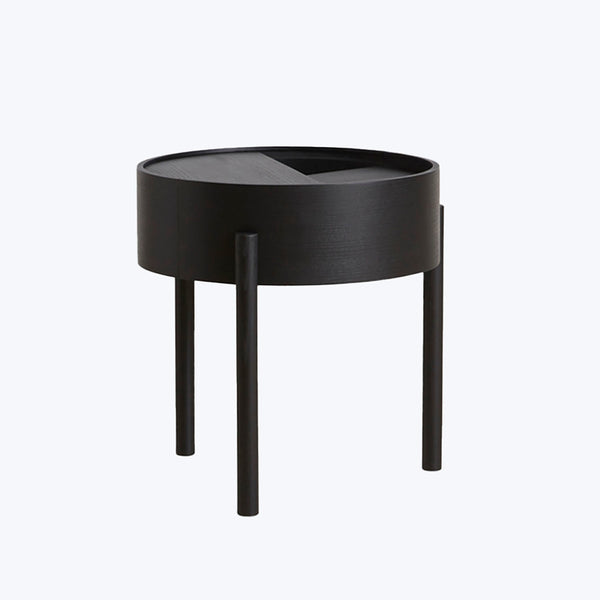 Discover the Arc Side Table by WOUD. Designed by Ditte Vad and Julie Begtrup, this elegant Scandinavian piece is inspired by the mathematical concept of a smooth curve joining two points on a circle. Rotate the circular lid to change the table’s aesthetic expression. Choose from Oiled Oak and White Pigmented Oak finishes.