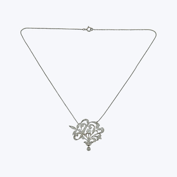 Art Nouveau Platinum Diamond Flora Pendant Necklace
