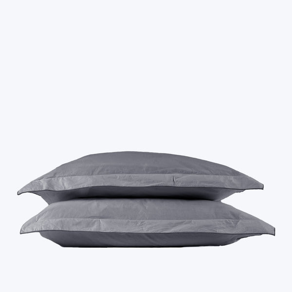 Surround yourself with a soft and airy feel for a restful night's sleep with the abcDNA Aura Shams. This duvet cover and pillow shams are created using a crisp, comfortable percale weave and 200 TC washed cotton resulting in breathable and non-toxic bedding. The Aura collection features balanced natural hues with a colorful contrasting edge, inspired by radiating botanical beauty. The Aura Sham Pair features a contrasting edge with an envelope closure and a 2" flange.