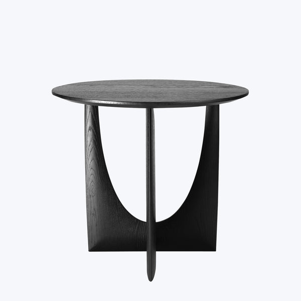 The Geometric Side Table by Ethnicraft is crafted from solid oak with a sleek varnish, bringing a strikingly modern presence to any space. With a 20.5" diameter and standing at 20" high, this 23-pound piece is both substantial and versatile, offering ample space for display or everyday use. Designed by Alain van Havre, its intersecting geometric shapes and oval-shaped cutouts give the piece a sculptural, dynamic form, shifting its appearance with every angle. The solid oak panels finished with a...