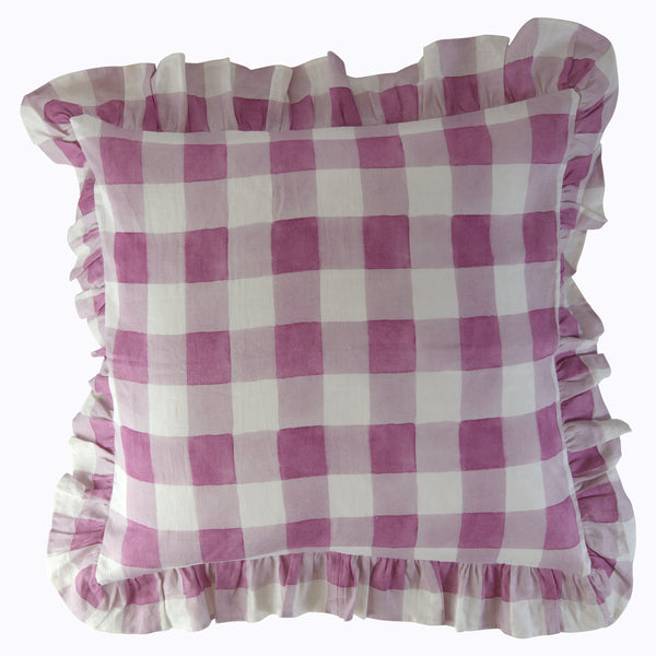 Crafted in Italy in 100% linen, the Blossom Plaid Linen Ruffle Euro Sham Pair by abcDNA brings a traditional summer touch to the bedroom. This elegant sham set couples a classic picnic pattern with a romantic ruffle edge. Available in shades of orchid, green, and brick.