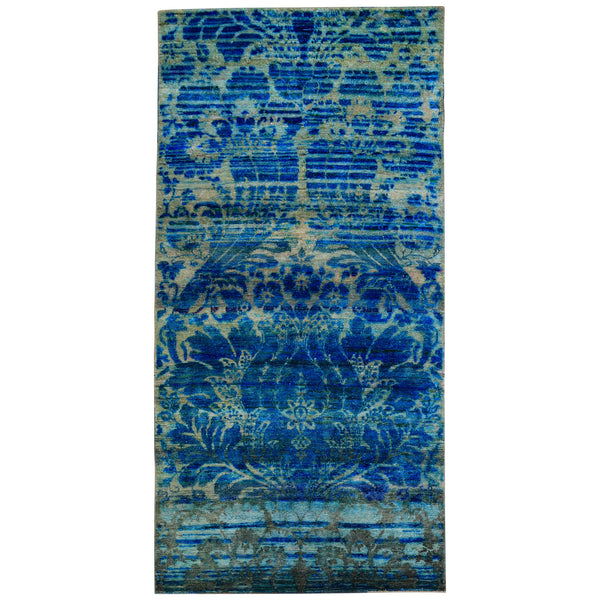 Blue Alchemy Contemporary Silk Runner - 3'1" x 6'5"