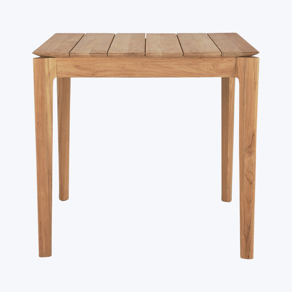 Discover the Bok Square Outdoor Dining Table by Ethnicraft. Crafted in solid teak, this timeless table combines solid construction with sculptural elegance and airy form. A beautiful piece, adding warmth to outdoor living. Designed by Alain van Havre.