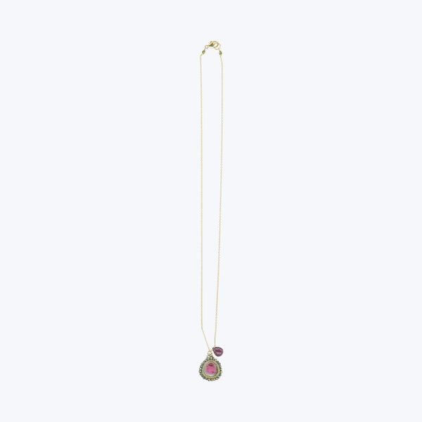 Caged Orbit Drop Necklace - Watermelon Tourmaline, Pyrite, Pink Tourmaline