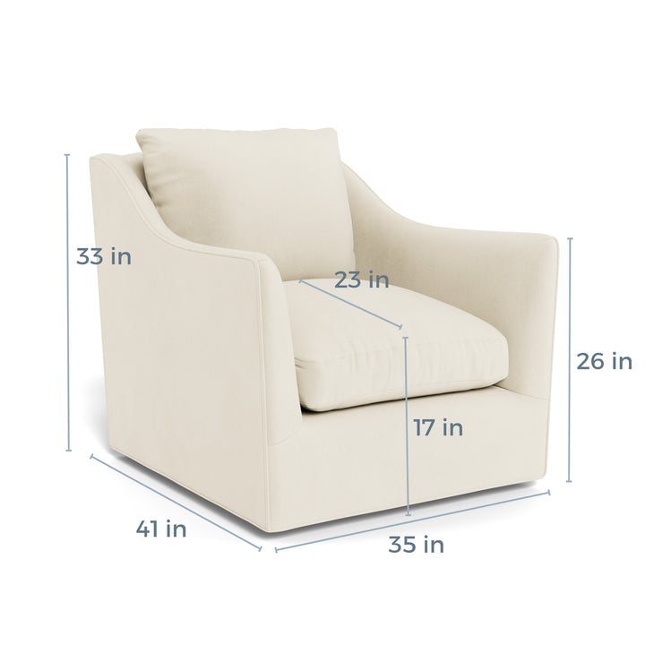 Available in a diverse selection of upholstered fabric options, the Charlotte Swivel Chair boasts a refined silhouette with gracefully sloped arms, offering a subtle nod to traditional design. Its transitional nature allows the pieces in the Charlotte Collection to harmonize beautifully with each other while effortlessly complementing a wide array of other styles. The Charlotte Swivel Chair features spring-down cushions, expertly combining soft foam with a premium down core for exceptional comfort and durability. Crafted with a sustainably-sourced Goodwood frame, it is built to last, inviting a lifetime of cherished memories in your home.