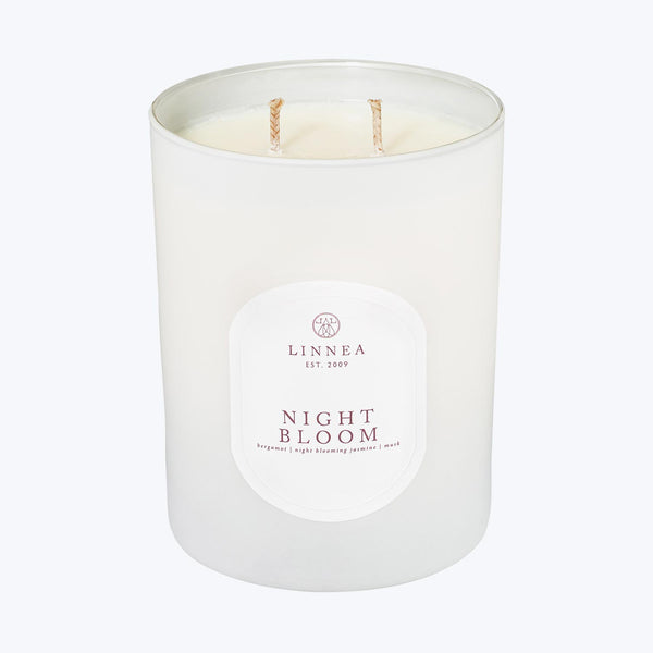 The Night Bloom candle fills your space with the essence of naked balmy night air, sea waves crashing along the shore, and night jasmine luring us into the mystery of the deep dark night. Matchbox included.Scent Notes: Night Blooming Jasmine, Herbal Bergamot, and Warm MuskLinnea is crafted in small batches from fragrant oils and domestically grown soy wax which is then packaged in locally-sourced packaging materials to create products that are eco-friendly, cruelty-free, and highest quality ingredients free from harsh...