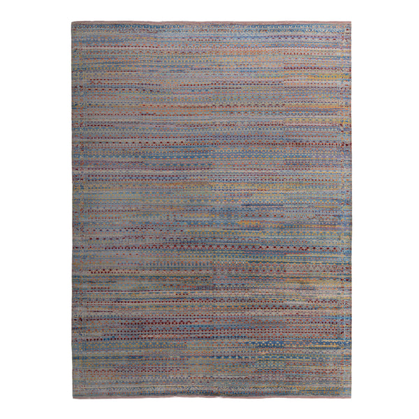 Multicolored Aurora Tibetan Modern Wool & Silk Rug - 8'11" x 12'1"