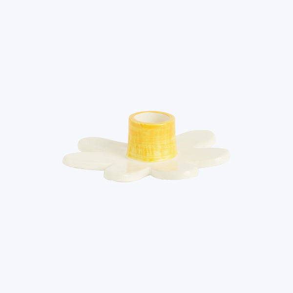 Add a touch of whimsy to your interiors with the Daisy Candlestick Holder by La Romaine Editions. Designed by Samantha Kerdine, this charming candlestick holder is handcrafted in glazed earthenware. A playful accent for irreverent contemporary spaces. Made in Paris. Available in Green, Pink, and Yellow.