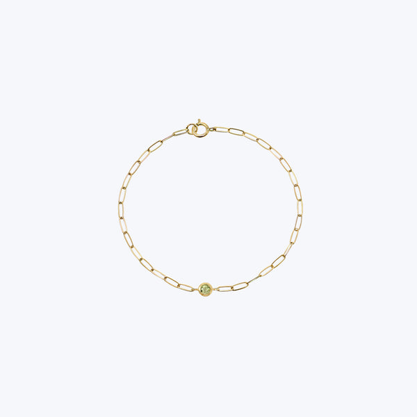 A dazzling round gemstone is bezel set in 14k gold and linked together with a paper clip chain. Gemstone measures 3mm in diameter. Paperclip chain links measure 5.25mm x 1.75mm and fastens with a trigger clasp. From its inception, Anzie Jewelry has been a celebration of life and color. Named after its founder, Anzie Stein, this collection of fine jewelry is best known for its signature pieces using precious gemstones that bring luxury to your everyday wear.