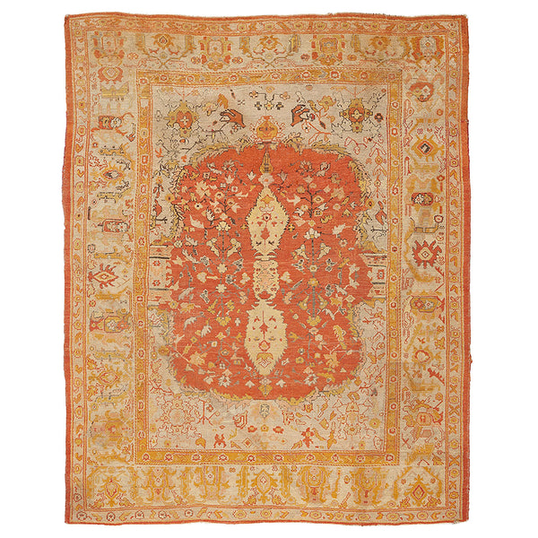 An expansive Turkish Oushak rug, measuring 10'3" by 13'3", transforms any room into a canvas of historical elegance. Hand-knotted with precision in Turkey, its woolen threads weave stories of durability and a comforting touch. Such a grand piece doesn't merely decorate; it defines living areas, dining rooms, or spacious bedrooms with its storied past and warm aura. At its heart lies an orange that has mellowed with time, evolving into an authentic shade of antiquity. This dominant color mingles seamlessly...