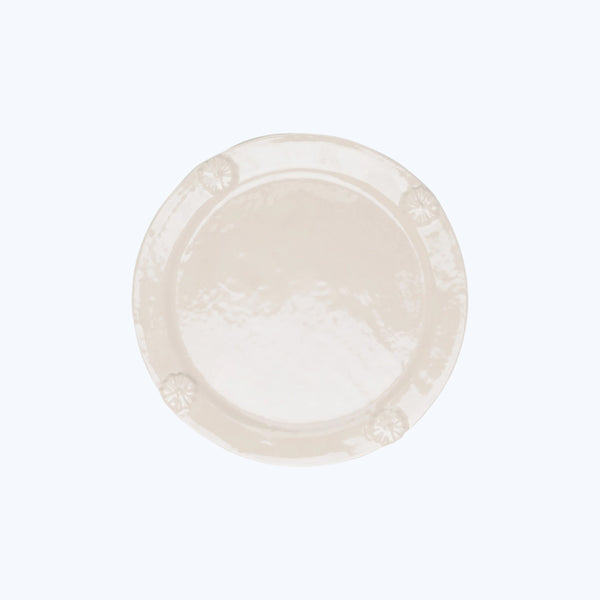 Discover the Flower Rim Dessert Plate by La Romaine Editions. Crafted in glazed ceramic, this charming dessert plate stuns with a creamy hue and artisanal texture. Perfect as a foundational piece for summer tablescapes. Made in France.