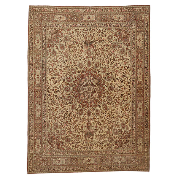 The Brown Antique Persian Wool Rug is a tapestry of storytelling woven into its fibers, a testament to artistry that spans cultures and generations. Each thread of this Turkish masterpiece has been meticulously hand-knotted, embodying a rich legacy of craft and precision. At 9'2" by 12'8", its formidable presence demands attention without overwhelming, offering an elegant underpinning for any living space that seeks both substance and style. Central to this rug is a striking medallion—a visual anchor that captivates and...