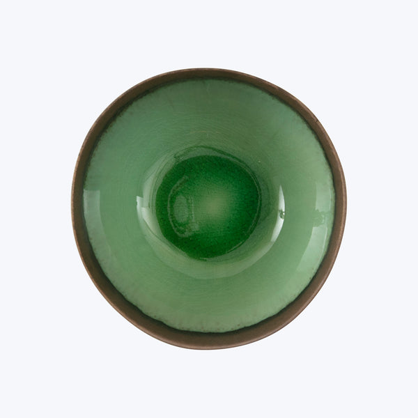 Fusing Eastern and Western styles, philosophies, and techniques, stoneware ceramics are crafted in Thailand. Cool tones brilliantly crackle in a marine habitat - a play of shadows, light, and texture. Each piece features one-of-a-kind crystalized designs inspired by pools of water.