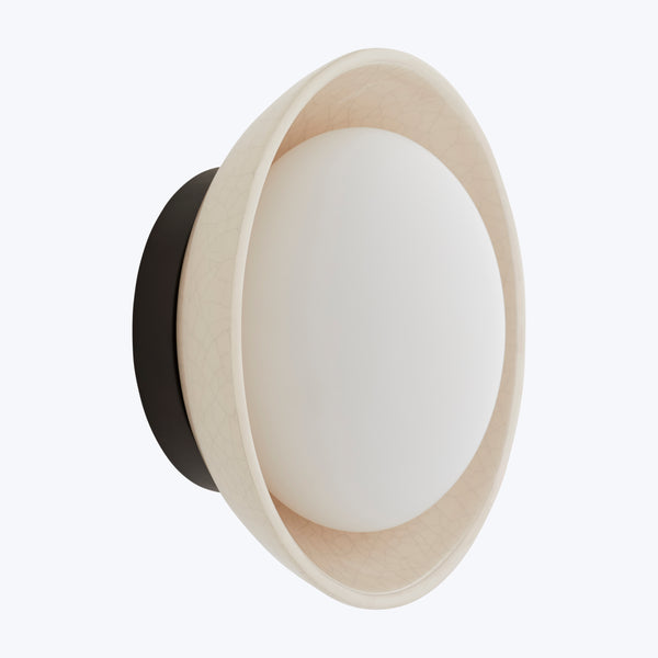 Bring a touch of retro elegance to your space with the Glaze Sconce by Arteriors. Blending soft, rounded form with monochromatic cool, the Glaze Sconce is at once nostalgic and timeless. Crafted in ceramic and frosted glass. Style in multiples. Available in Black and White. Choose from small and large sizes. See also the Glaze Flush Mount.