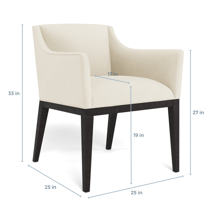 Elevate your dining experience with the Helmsley Dining Arm Chair, exclusively available online from ABC Carpet & Home. This sleek, fully upholstered chair, paired with wood legs and minimalist design, brings an air of understated sophistication to any dining room or kitchen. Whether you’re gathering for a family meal or hosting an intimate dinner party, the Helmsley Dining Arm Chair offers both comfort and modern elegance, making it the perfect addition to your home.