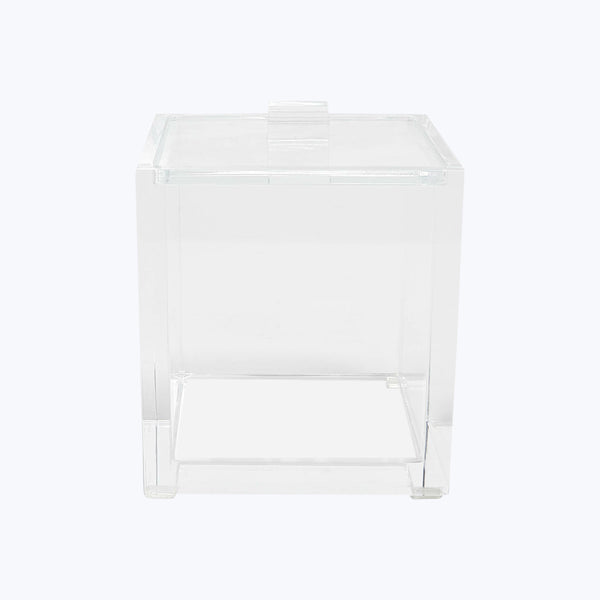 This assortment of neutral contemporary bath accessories features a clean and modern sandblasted blue frost-finished profile. Suitable for humid environments and are anti-bacterial and stain resistant. Hand cut, assembled, and polished. The Ice Container by Mike & Ally connects clear Lucite construction with compact storage for bath and personal care essentials. Designed as a versatile receptacle, it holds ice for cooling treatments or accommodates small items like bath salts, cotton pads, or cold compress elements.With dimensions of 4 inches wide...