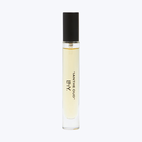 Discover the Ianthe Oud Eau de Parfum by Liberty London. Designed by Nicolas Bonneville in celebration of nature’s aromas, this deep, irreverent oud scent evokes the enchanting ambiance of twilight as English violets mix with honeyed mimosa, musky patchouli, cedar, and agarwood. Includes essences of mimosa, bergamot, violet, cedarwood, myrrh, agarwood, olibanum, guaiac wood, patchouli, and leather. Made in France. Available in 8 ml and 50 ml.