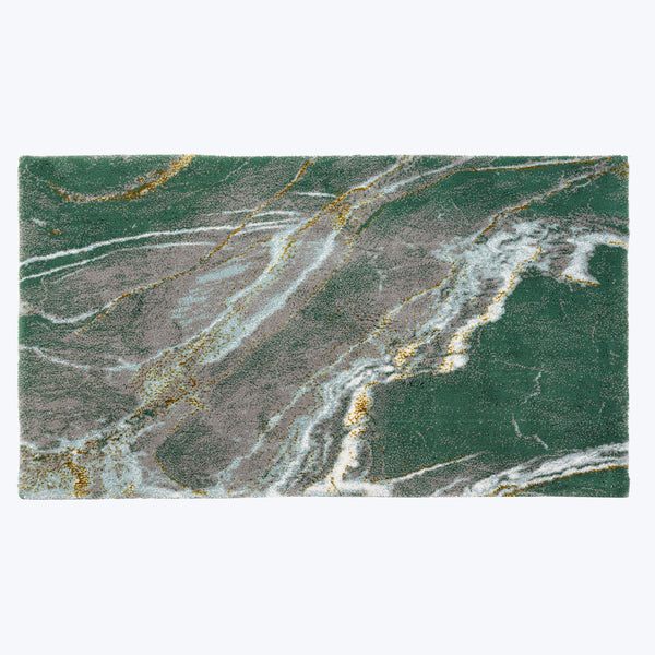 The Lipari Bath Rug showcases the stunning striations of a green marble formation with its soft grey contrast and gold accents. Crafted from the finest cotton, this marble bath mat is super soft and absorbent. A true centerpiece for your home spa and master bathroom.