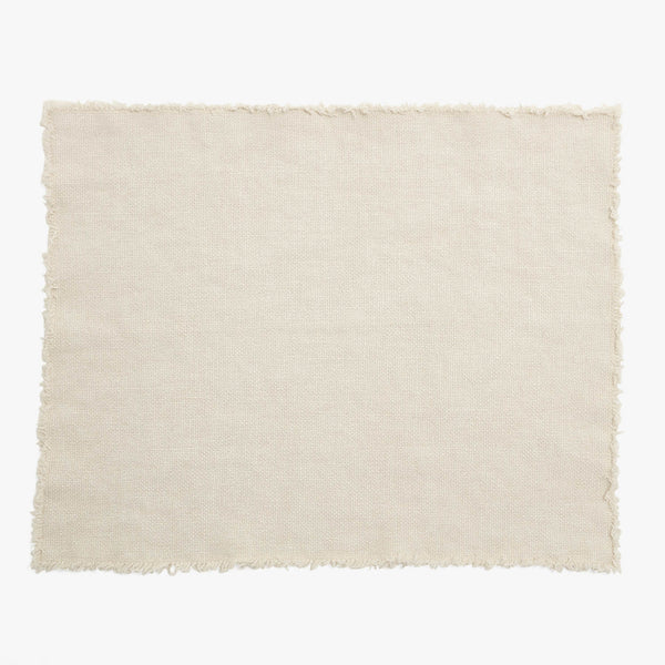 Woven of robust canvas linen, these placemats feature a fringed border detail for a table setting that feels elegant, yet effortless. The tactile, timeless appeal of linen is easily layered or mixed and matched with contrasting colors, and the simple, understated design is practical and versatile for both everyday meals and special occasions.