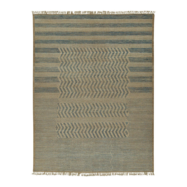 Blue Zameen Stripe Moroccan Wool Rug - 9'9" x 13'10"