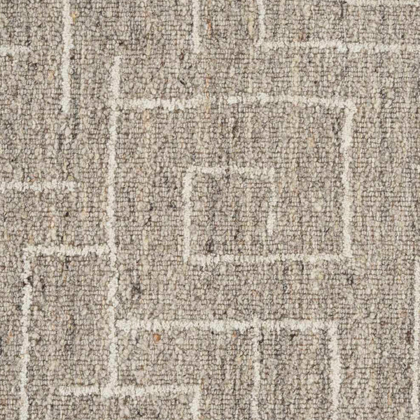 The Trek Custom Carpet carpet showcases a soft, densely woven texture with a geometric design multiple colorways. Hand-loomed in India using 70% Wool and 30% Nylon, this high-quality, durable rug is a neutral aesthetic that complements any interior decor style.