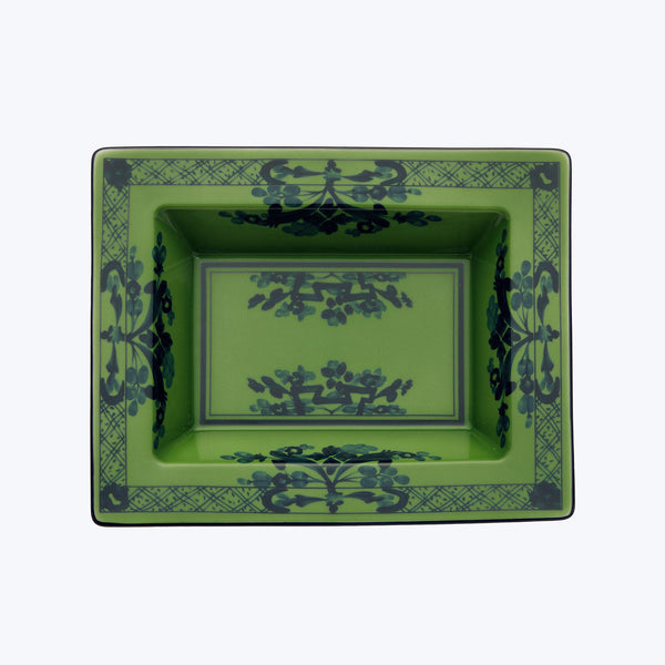 This Oriente Rectangular Vide Poche is a stunning piece of porcelain dinnerware from Ginori 1735 that's not only a work of art but also a piece of history – the atelier of expert artisans was founded in the 18th century, merging timeless elegance with beautiful craftsmanship. Full of lovely details and striking color, this serving dish brings a touch of wonder to your tabletop. Available in an assortment of colors; Albus, Azalea, iris Gold and Malachite.