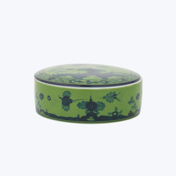 This Oriente Round Box with Cover is characterized by fine porcelain embellished with a delicate floral ornament that traces the lines of the classic Antico Doccia, distinctive of the Florentine Maison, that exudes Italian craftsmanship. Each piece of stunning porcelain is a work of art and a piece of history – the Ginori 1735 atelier of expert artisans was founded in the 18th century, merging timeless elegance with beautiful craftsmanship.