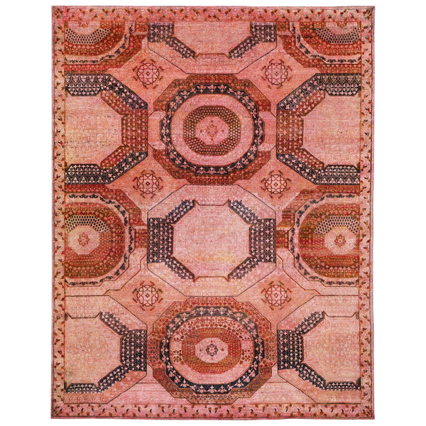 This Pink Alchemy Traditional Silk Rug measures 7'9" x 10', providing a substantial area rug for various interior designs. Hand-knotted from pure silk in India, it is a part of the esteemed Alchemy Rug Collection. This piece offers a blend of traditional design elements and a refined color palette, suitable for both classic and transitional spaces. Crafted from 100% silk fibers, the rug features a soft texture and a subtle sheen that highlights its intricate patterns. The hand-knotted construction signifies...