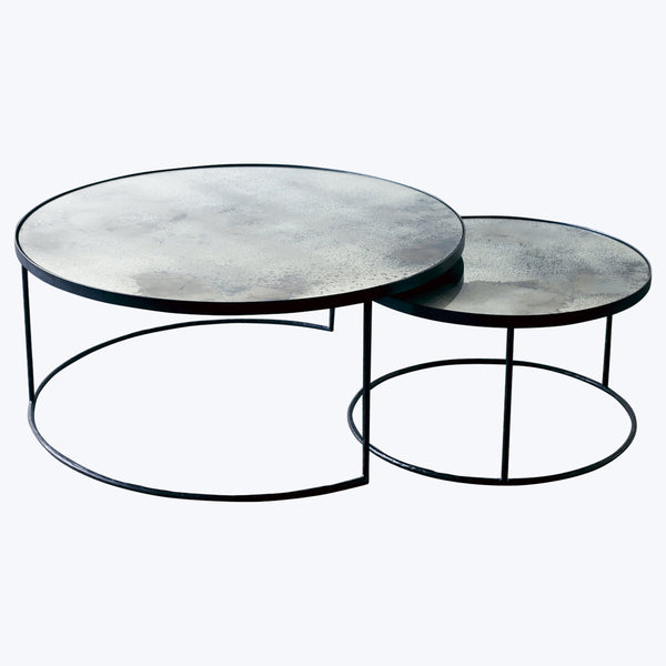 Experience the stunning fusion of vintage charm and modern design with the Reflect Coffee Nesting Tables from Ethnicraft. This set captures the beauty of your environment on its reflective surfaces, featuring heavy-aged mirrors that evoke retro vibes, while sleek metal frames add contemporary elegance. Designed to be space-savvy, the smaller table nests seamlessly under the larger one, offering a clever and unobtrusive storage solution when not in use. The Reflect Coffee Nesting Tables introduce a signature touch of retro artistry...