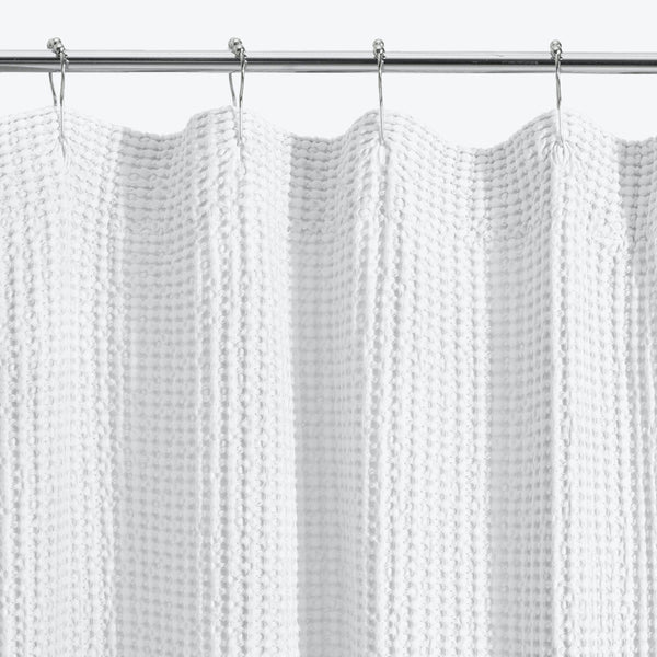 The Simple Waffle Shower Curtain by Hawkins New York creates a clean, textured look with its square waffle weave crafted from 100% cotton, sized at 69" L x 69" W. This design adds surface texture and depth while maintaining a straightforward, uncluttered profile. Made from pure cotton, the weave provides breathability and a soft touch. Since cotton isn't waterproof, it's intended for use with a separate shower liner to protect it from water. Its square dimensions easily fit many shower...