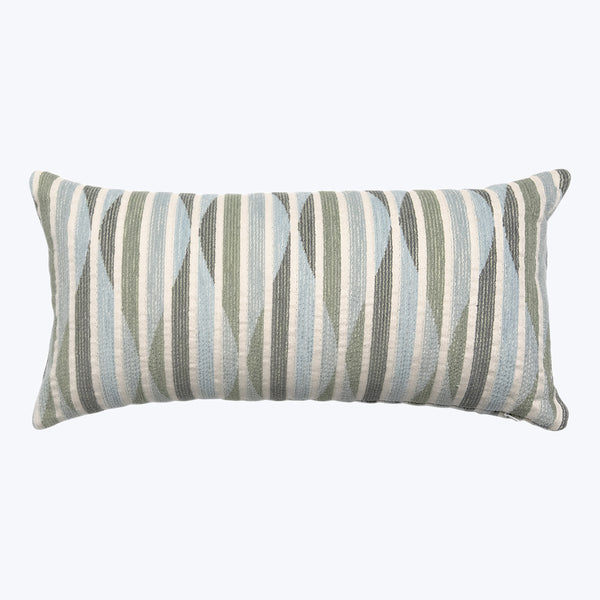 Discover the Stripe Ogee Performance Lumbar Pillow Mist by Kevin O’Brien Studio. Handmade in Philadelphia, this refined pillow features a captivating ogee pattern in a soft, earthy palette. An elegant addition to understated spaces. Crafted in weather-resistant performance fabric.