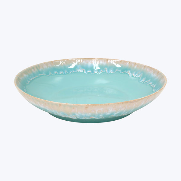 Designed in collaboration with abc, the Taormina 13" Pasta Serving Bowl by COSTA NOVA features a stunning reactive glaze with contrasting borders. This beautiful serving bowl is meticulously crafted in fine stoneware by expert Portuguese artisans. A one-of-a-kind piece designed for everyday use. Available in Aqua and White.