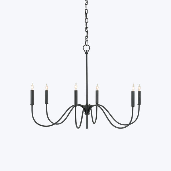 Discover the Tirrell Small Black Chandelier by Currey & Company. A nod to Early American style, this elegant chandelier stuns with graceful simplicity. The Tirrell Small Black Chandelier is crafted in wrought iron with an antique black finish. A refined addition to industrial and farmhouse spaces. Adjustable from 30.5" to 98.5".
