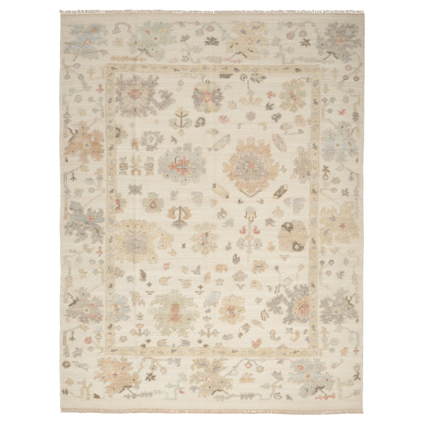 Enhance your space with the Ivory Essentials Traditional Wool Rug. This hand-knotted beauty from India features intricate floral and geometric patterns in muted tones of blue, green, orange, and white. The wool material adds a luxurious texture, while the traditional design exudes elegance and sophistication. Add a touch of timeless style to your home with this exquisite rug.