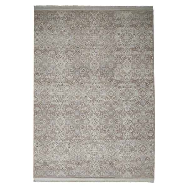 This Cream Transitional Silk Rug offers a blend of classic design and contemporary appeal, making it suitable for a range of interior styles. Measuring 9 feet 11 inches by 14 feet 3 inches, this large area rug serves as a foundational element in spacious living rooms, dining areas, or master bedrooms. Crafted from 100% silk, the rug features a soft, lustrous pile that reflects light and provides a luxurious feel underfoot. Silk is known for its durability and inherent sheen,...