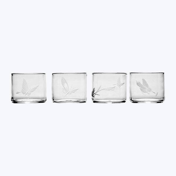 Discover the Unity Shot Glasses - Assorted Set of 4, exclusively at abc. Part of the Tomorrowland x Serax collection, these refined shot glasses feature exquisite engravings based on hand-drawn illustrations by Tomorrowland’s creative team. Each glass is mouth-blown in crystal potassium and delicately engraved by hand. A stunning set, perfect for holiday gifting.