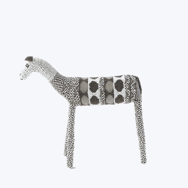 This White & Silver Beaded Horse brings bright energy into your home. Revive your decor with this one-of-a-kind art. Monkeybiz is dedicated to reviving the tradition of African Beadwork by creating sustainable employment for a vibrant community of over 300 bead artists in South Africa. Each Monkeybiz artwork is unique and created by hand using traditional methods of beading with needle and thread. Every colorful and creative beaded artwork is signed by the artist to ensure individual artists receive recognition for their work...